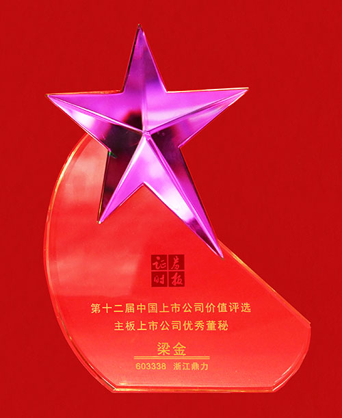 8月12日,由证券时报主办的新时代 新动能 新价值第十二届中国上市公司价值论坛暨颁奖典礼在青岛隆重举行,会上揭晓了第十二届中国上市公司价值评选各奖项榜单。浙江鼎力凭借出色的综合实力,荣获中国主板上市公司价值百强;董事会秘书梁金获评中国主板上市公司优秀董秘。