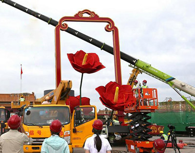 鼎力高空作业平台参与巨型花篮摆放安装