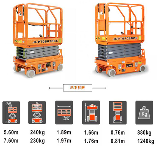 对此,鼎力急客户之所急,创造了租赁市场的又一片蓝海,推出了市场保有量少、租金竞争力大、小巧灵活、专注楼宇夹层登高作业的小剪叉平台JCPT0607DCS、JCPT0708DCS。