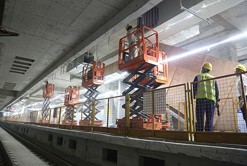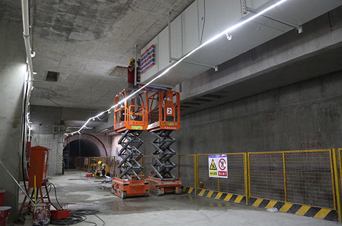 该项目内部楼层间,普遍层高为3~4米,中大型高空作业平台大材小用,结合实际作业环境,该项目选取了通过性强、可灵活进出客梯的小剪叉。