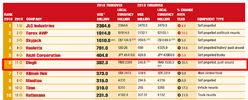 全球第6,鼎力携手中国 高空作业平台制造商集体登榜M20!