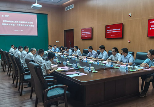 许继集团董事长张旭升与浙江鼎力董事长许树根各自携核心团队成员在许继总部洽谈。