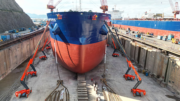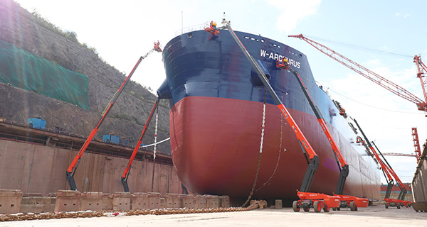 为更好服务船企,10台设备均根据万邦重工实际需求进行专项设计与定制,是不折不扣的创新之作! 作为智能高空作业平台领先企业,“全球高空作业平台前三制造商”,一直以来,鼎力不断精进研发设计水平,持续深耕智造工艺,引领着行业电动化改革,成效显著。