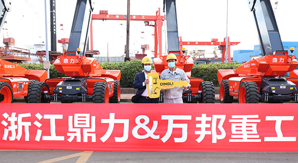 近日,鼎力10台34米臂式浩浩荡荡抵达万邦重工(舟山)有限公司,一抹亮眼的鼎力“红”顺利完成现场交机,双方正式迈出战略合作后的重要一步!