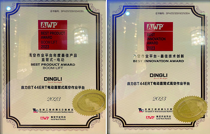 与此同时,作为鼎力主推的领衔电动臂式,T系列44米电动臂式BT44ERT不负众望,荣获“2023高空作业平台最佳技术创新”、“年度最佳电动直臂”双料奖项!