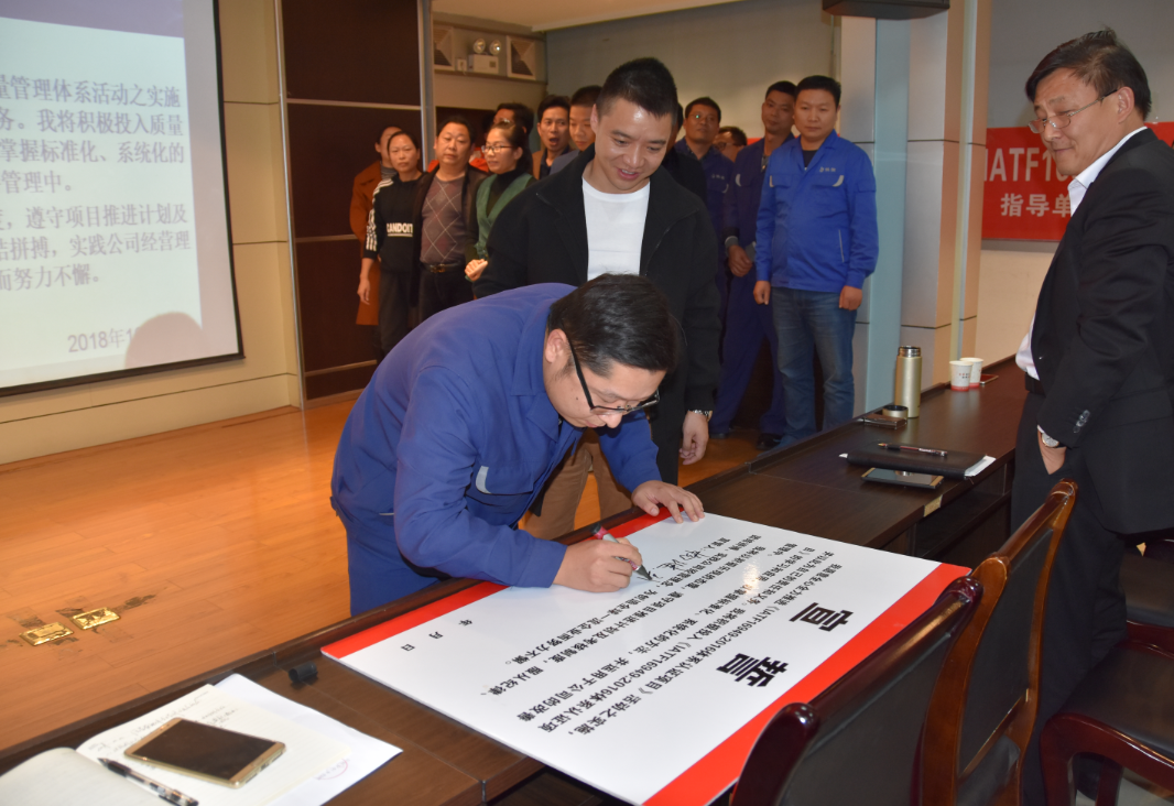 會(huì)上,質(zhì)量管理體系推進(jìn)小組成員進(jìn)行了集體宣誓并現(xiàn)場(chǎng)簽名,充分展示了開展《質(zhì)量管理體系提升》項(xiàng)目工作的決心。相信在公司上下一心、積極努力下,湖北佳恒科技股份有限公司一定能真正實(shí)現(xiàn)質(zhì)量管理體系提升,將IATF16949:2016質(zhì)量管理體系在企業(yè)內(nèi)部有效運(yùn)行,為企業(yè)持續(xù)健康發(fā)展保駕護(hù)航!