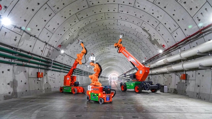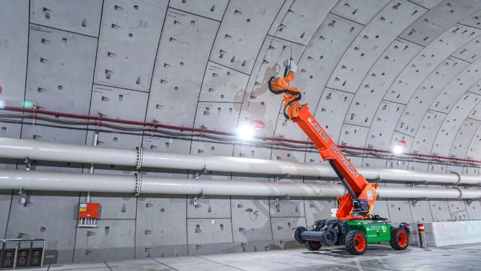 近期,随着项目推进,隧道内部开始进入机电安装、管线敷设阶段,需在坚硬的混凝土管片上进行数以万计的高精度钻孔。粉尘控制、高空作业安全、毫厘不差的精度要求,在密闭、富水的超长隧道空间中,被无限放大。